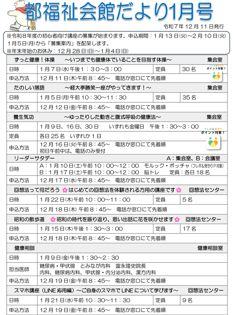 | 拡大 & 印刷用 令和8年1月 都福祉会館便り |